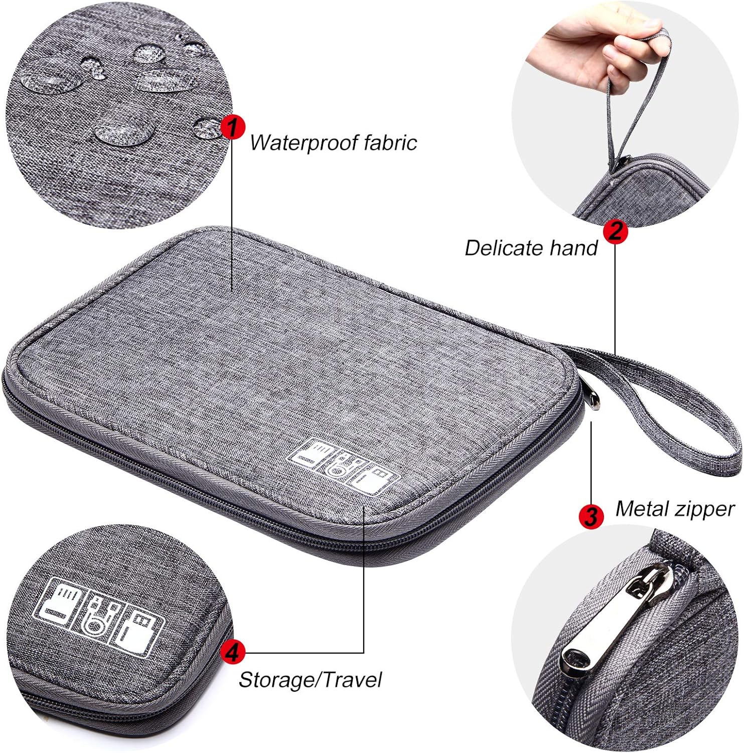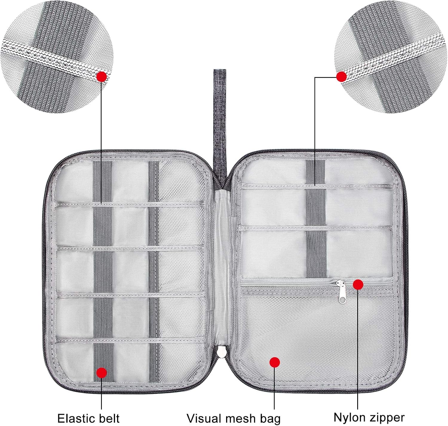 - ADEQUATE STORAGE-The digital bag provides 1 inner mesh pocket with zipper for your portable hard drive,5 mesh pockets with elastic loops for USB cables,earphones,etc,8 elastic loops for slender cables,earphones or pens to prevent cables from getting enttangled.In a word,this bag can store your electronic accessories,pens,jewelry or makeup.