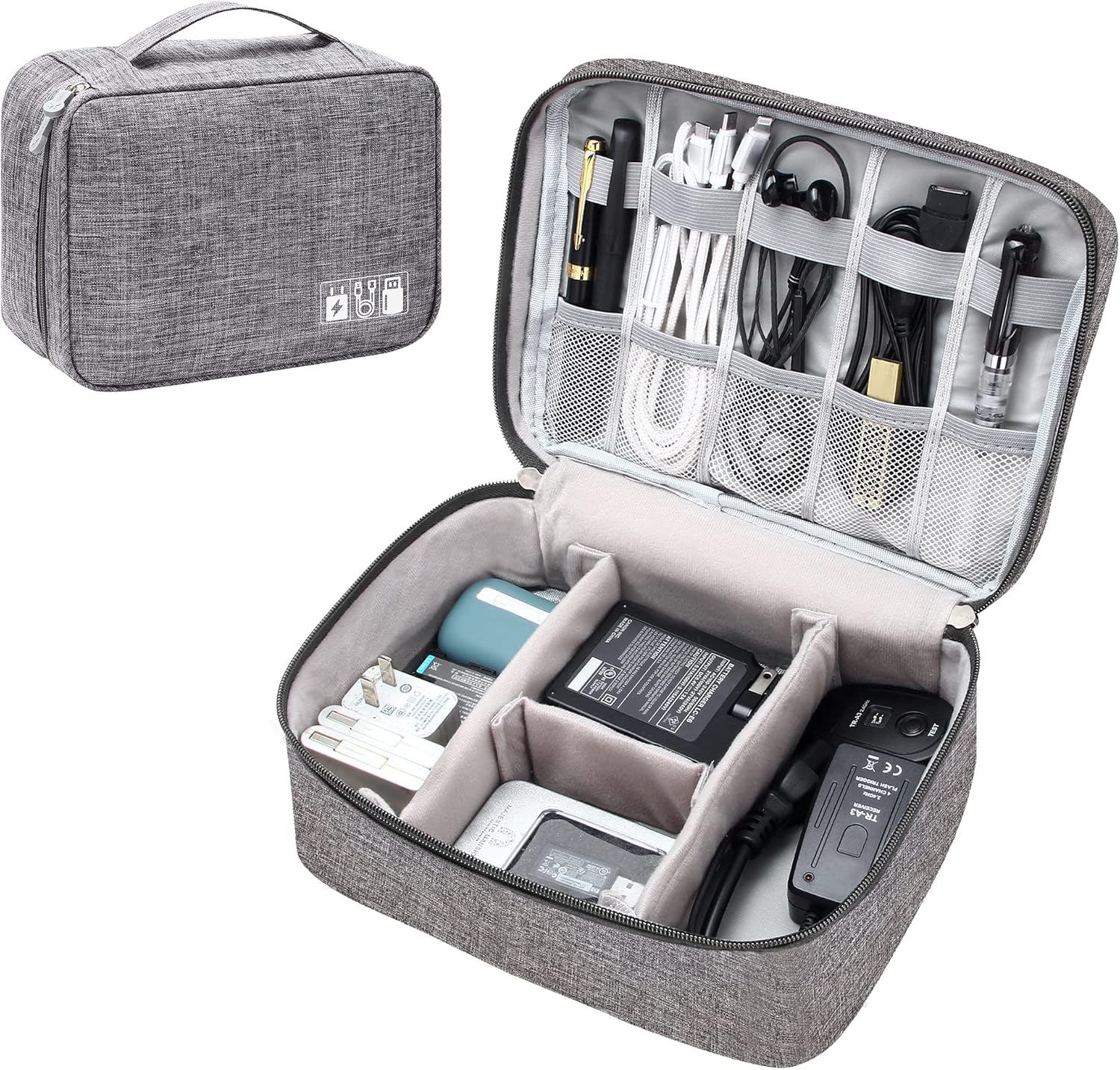 - KEEP EVERYTHING ORGANIZED: The electronics storage bag has multiple pockets, large enough to store your electronic accessories. Except 3 detachable dividers, there are 5 mesh pouches with elastic loops, can hold your daily electronic accessories, such as cables, various chargers, headphones, electronic adapter etc.