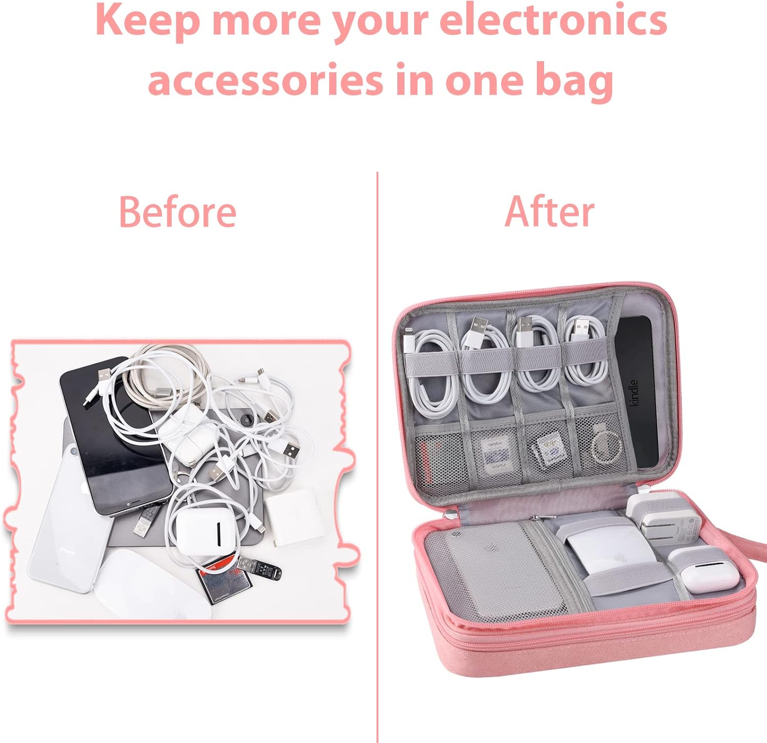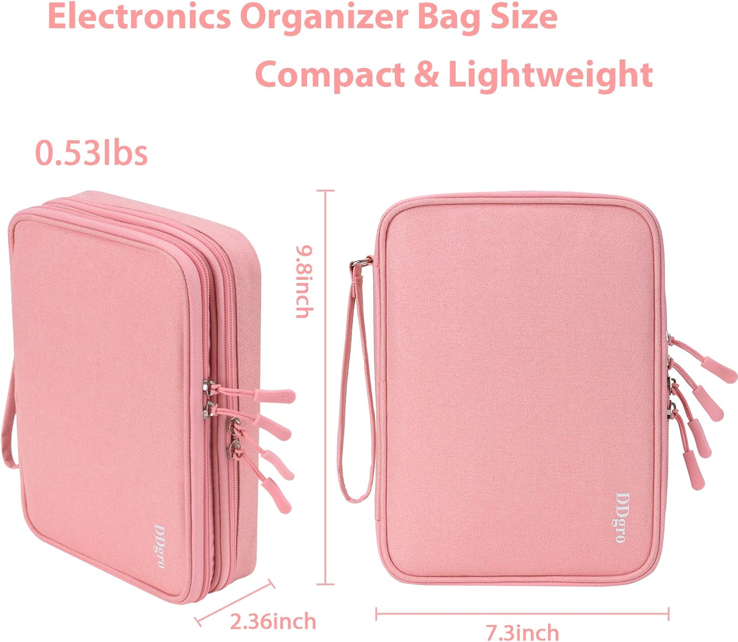 DDgro Charge Organizer Case Bag, Electronics Travel Pouch for Cable & Cords, Tech Accessories (Large, Pink)