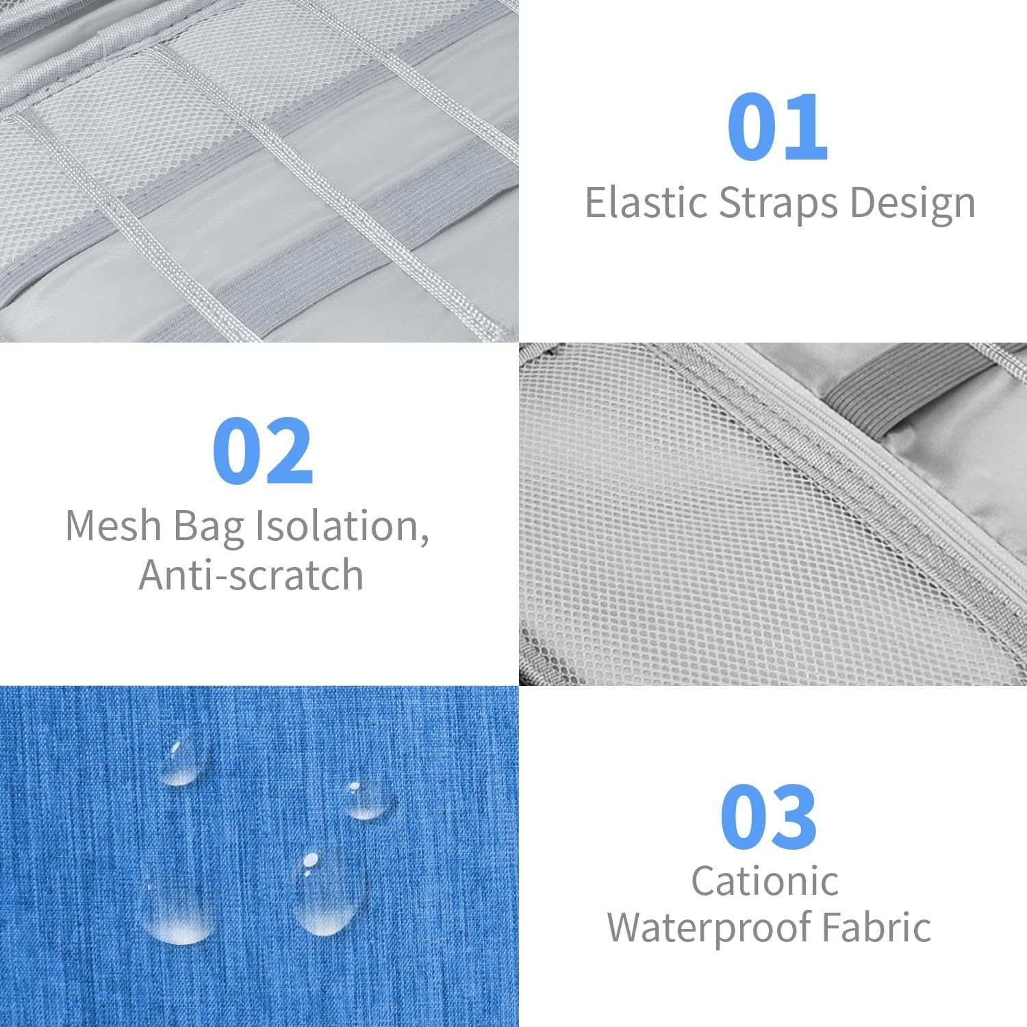 - Safe Storage:It has one mesh pocket with zipper, 5 elasticized mesh segments and multiple elastic loops,so you can store multiple sizes of cables.Classify and store your items to make them excellent travel cord organizer and travel cable organizer
