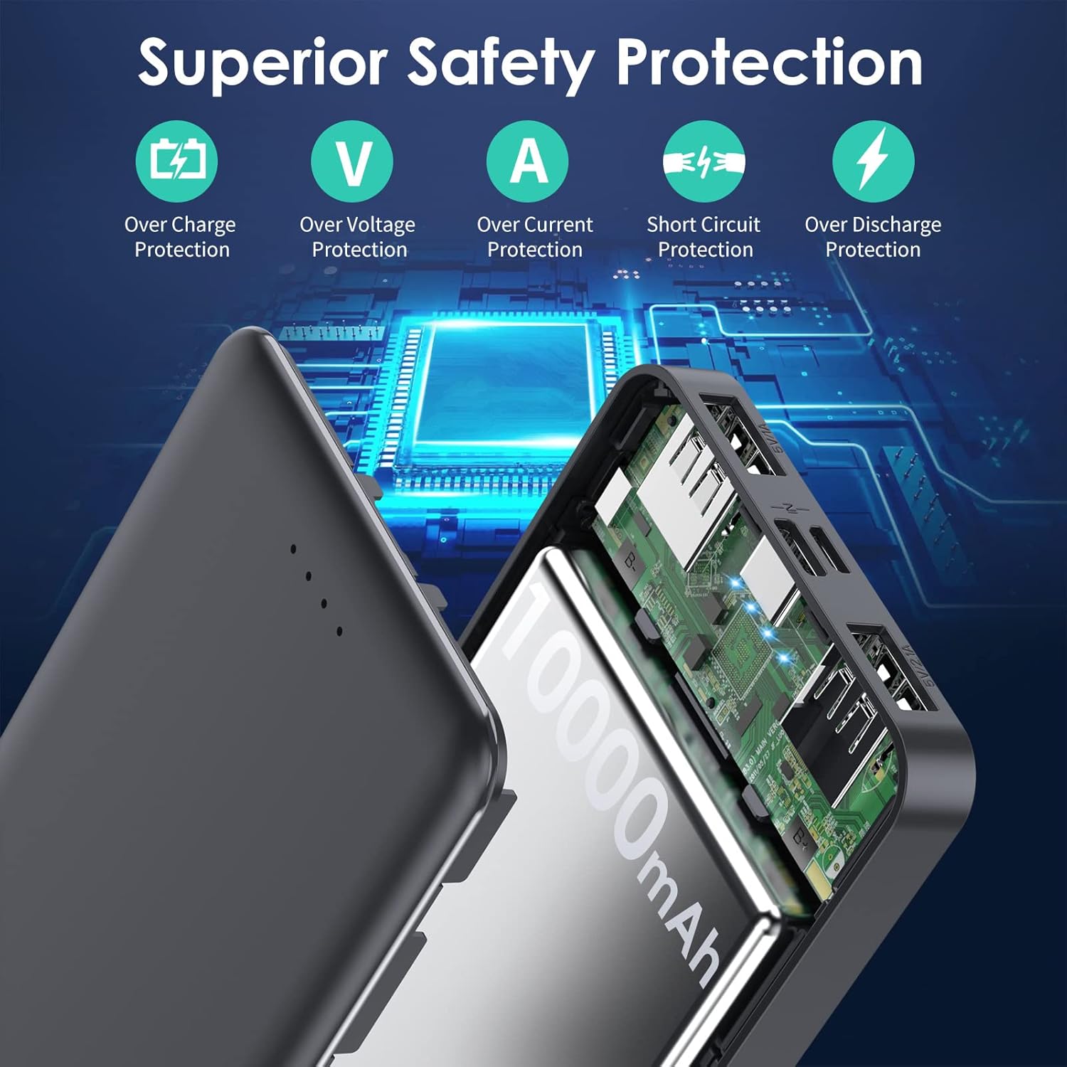 - 【Compact & Ultra Slim】2 Pack 10000mAh Power Bank using high-quality Li-polymer electric core and Ultra Slim Design, easy to toss into a bag and incredibly portable. Adopts our advanced intelligent controlling IC, higher quality, safer and more reliable, powerful and longer-lasting life after 100% checked and continuous aging test.