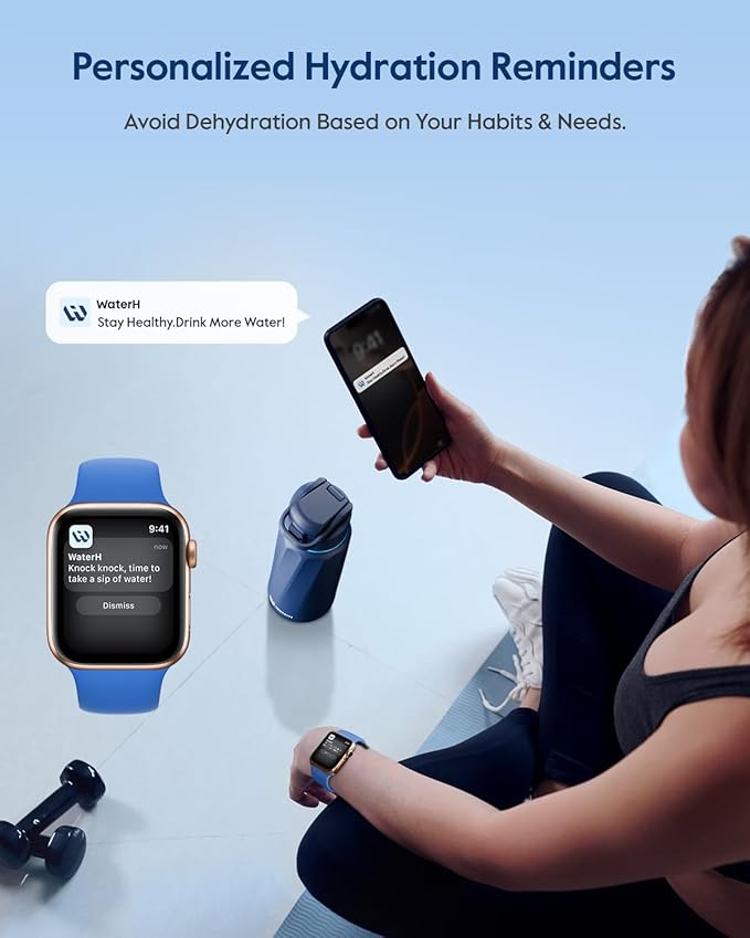 - REMINDER TO REACH GOAL: WaterH smart water bottle is a game-changer, featuring built-in hydration reminders and tracking capabilities. The light ring on the lid, the LED display, and the notifications on your phone or smartwatch help you avoid the negative effects of dehydration caused by forgetting to drink water—such as dizziness, increased blood pressure, and fatigue. It also helps you reach your wellness goals and develop lasting hydration habits.