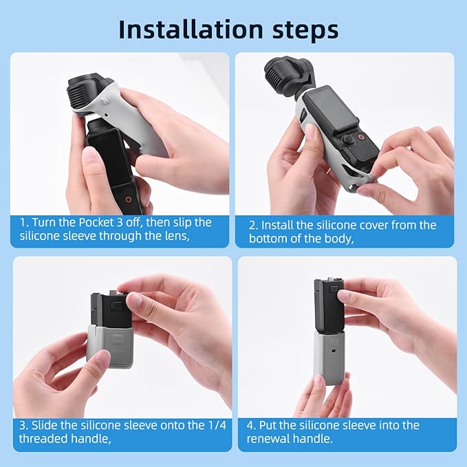 - ULTIMATE PROTECTION AND PORTABILITY - This top-of-the-line pocket 3 silicone cover provides unparalleled protection for your Pocket 3 camera, including Pocket 3 Camera Body Protector * 1, Lens Protector * 1, Screen Protector * 1, Handle with Thread Protector * 1, Anti-lost Rope * 1, Wrist * 1. It offers full 360-degree protection and seamlessly fits into different storage bags, making it the perfect choice for your outdoor adventures.