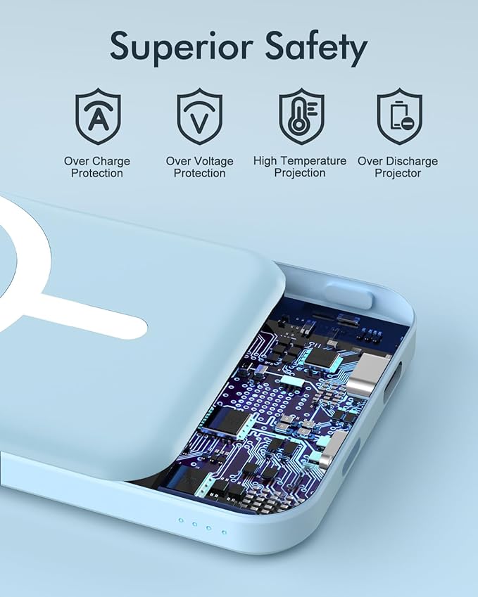 - Superior Safety: With 8 built-in low-temperature ice cores, this latest Podoru magnetic power bank has comprehensive multi protect safety system specifically includes temperature control, overcharge protection, short circuit protection;Multi-Protect safety system ensures that your devices are shielded from potential hazards, providing you with a worry-free charging experience