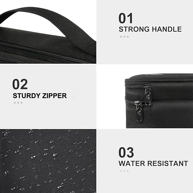 - Compact & Portable - Size: 8.5 X 6.5 X 3 inch, this cord organizer will be a perfect helper while you are on travel or business trip. Its perfect size allows it to be easily put into your backpack and luggage. Designed with a sturdy handle for carrying all your electronic accessories you need easily