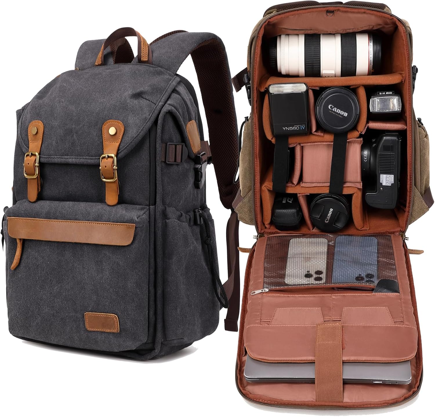- This camera bag is well-made, fashionable and lightweight. It is suitable for travel. This bag protects your gear well when you go boating or hiking. The camera backpack can also be used as a day bag for street photography, wedding photography, museum tours, and outdoor activities.This versatile backpack provides you with comfort protection and fashion