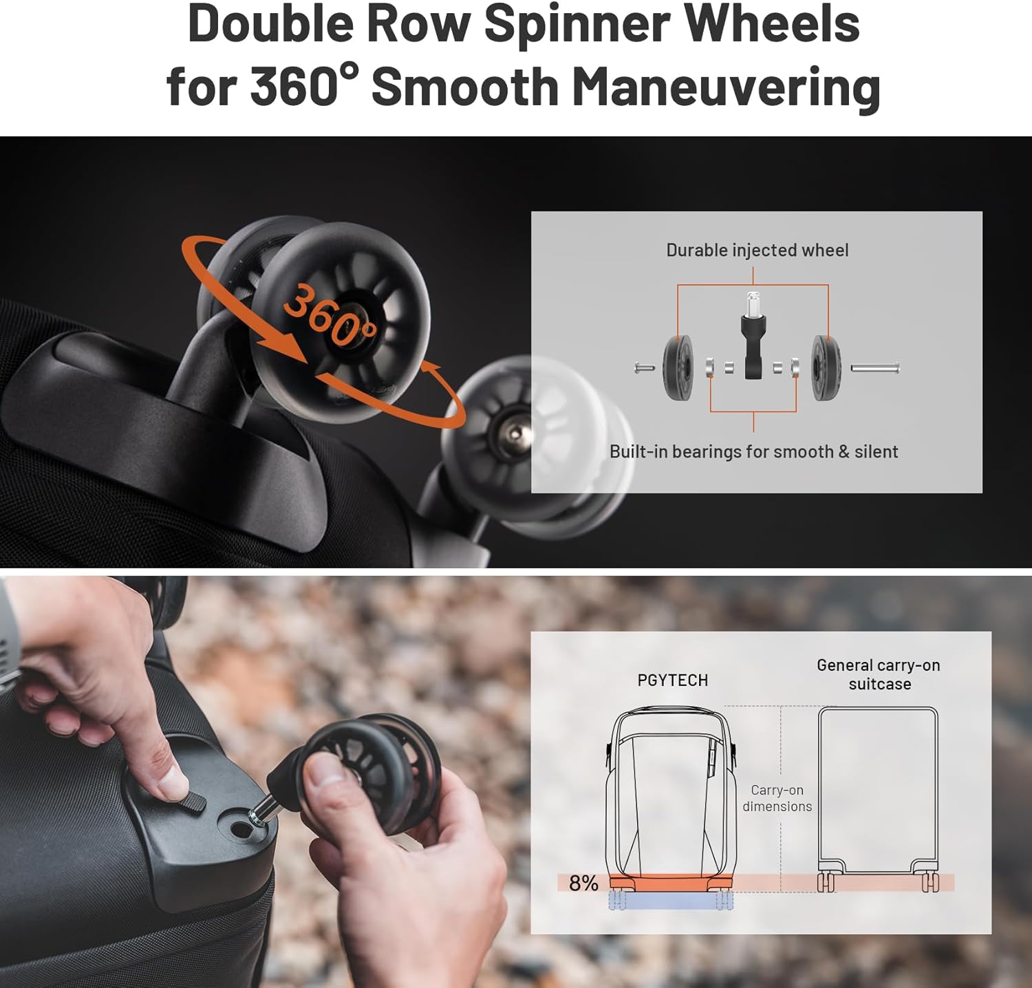 - 【High-performance Accessories】 Its high-performance silent double wheels can be quickly disassembled, offering up to 8% more space than the general carry-on luggage, while still meeting airline standard. The three-stage aluminum handle ensures balanced, easy handling, optimizing space efficiency