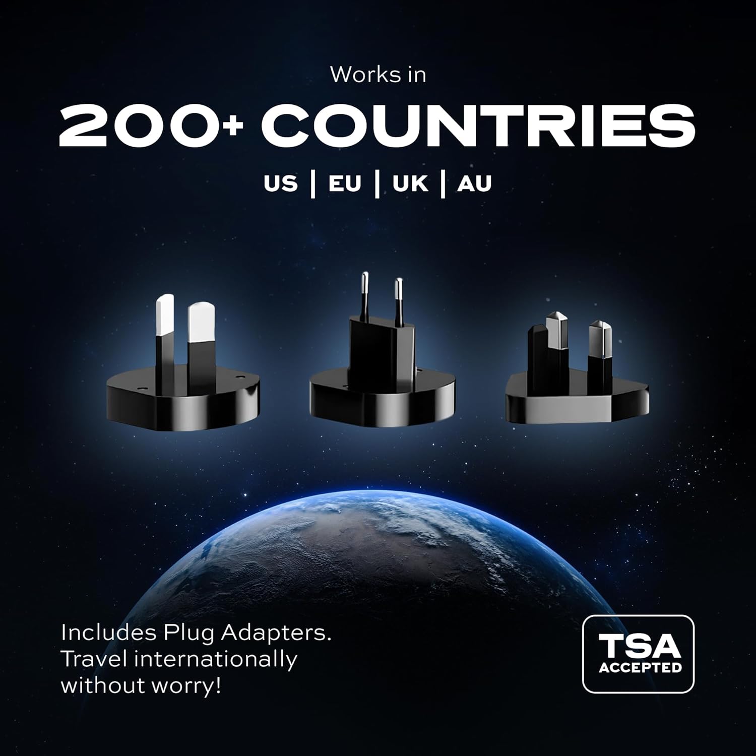 - International Travel Charger Works in 150 Countries. 3 travel adapters included with the SmartCharge allow you to charge up in over 150 countries worldwide. Works in US, Europe, China, UK, Korea, and more.