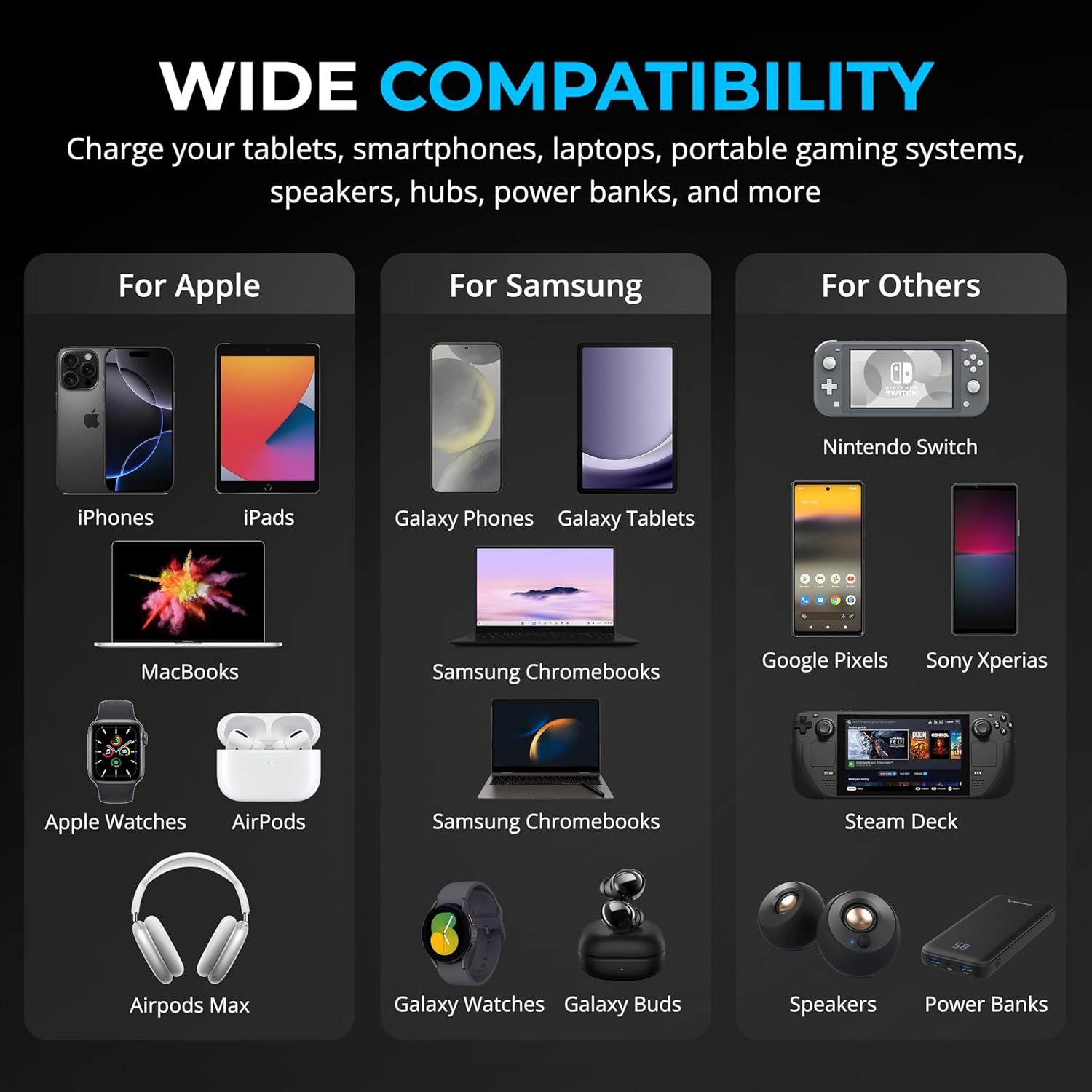 - Compatible Devices : Smartphones, Tablets, Laptops, Gaming Consoles, Accessories