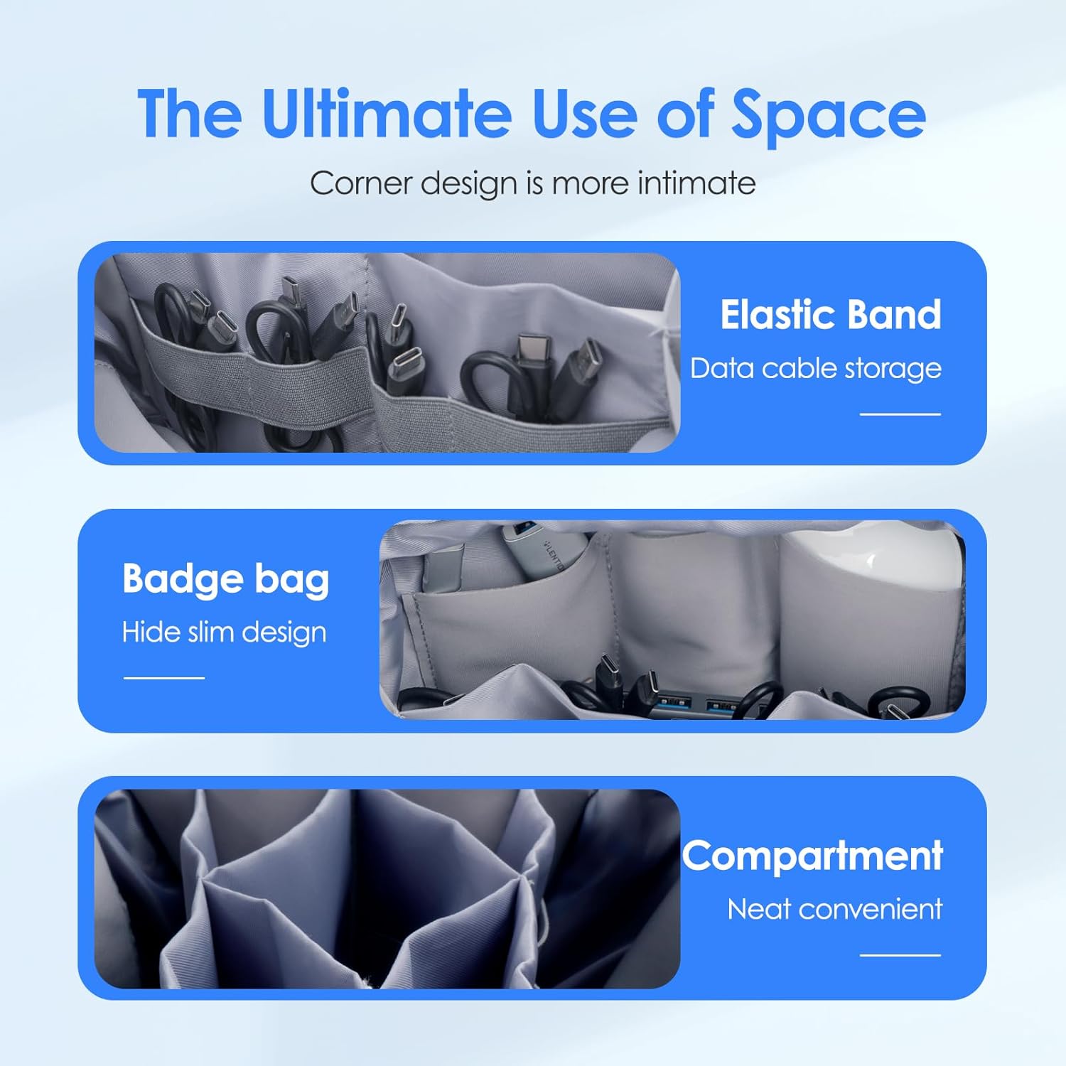- Mutil-pocket Organisation: Our bag has 1 extra-large pocket for your tickets, passport, 2 large pockets for tablets, gamepads, hard drive, power bank and other electronic devices, 11 medium pockets for mouse, mobile phones, watch, charger, headphones, 6 cable storage pockets can be used to store a variety of cables and cords.