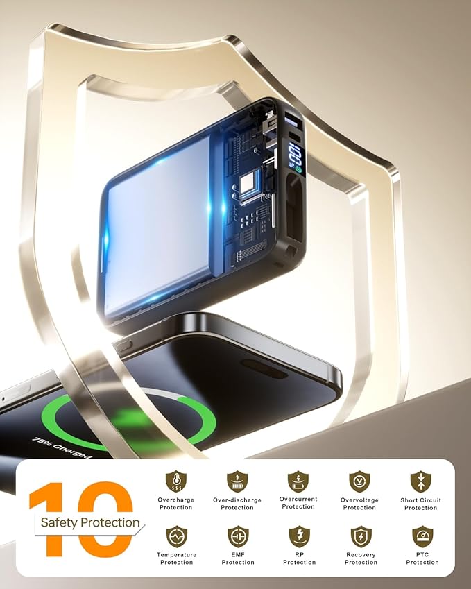- [Reliable Safety & Long-Term Durability] : Built to last through years of daily use. Premium lithium polymer cells and a rugged ABS+PC shell for long-term reliability. Multiple protection systems guard against overcharge, overcurrent, short-circuit, and overheating. Designed for 1000+ charge cycles to ensure stable performance over time.