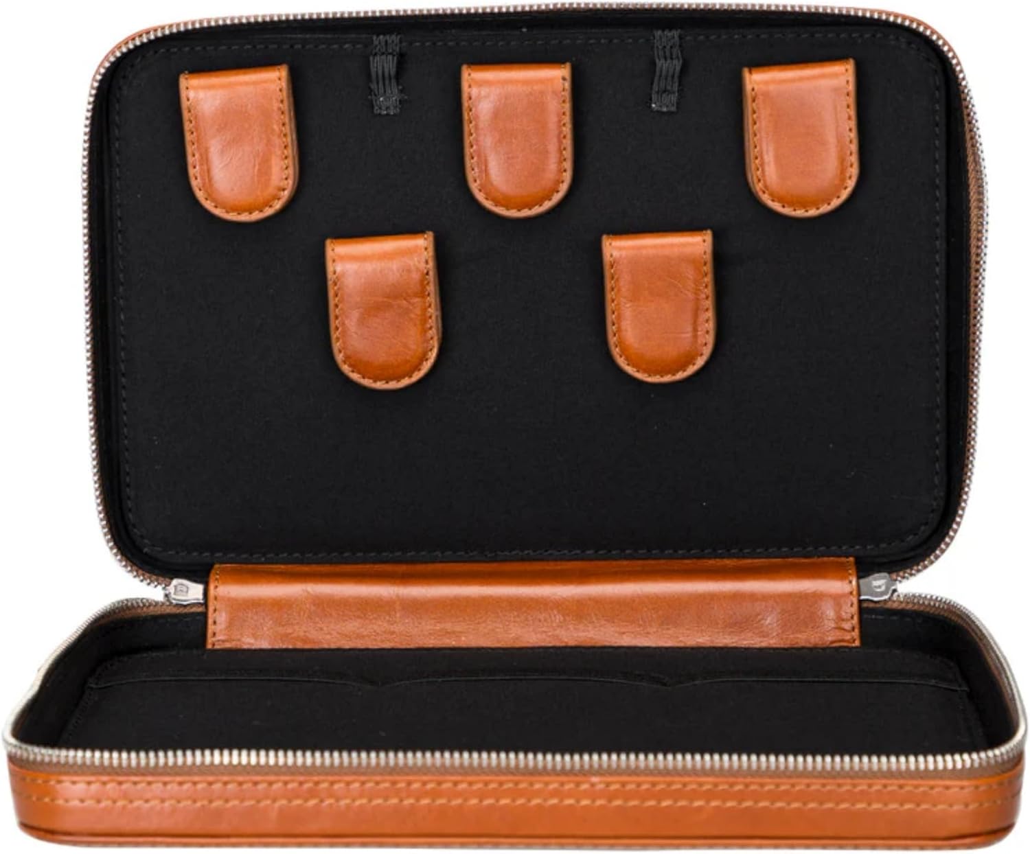 Medicine Handmade Leather Cable Organizer Bag – Full-Grain Leather Travel Tech Case for Cords, Chargers & Accessories – Zippered Storage for Men & Women (Tan)