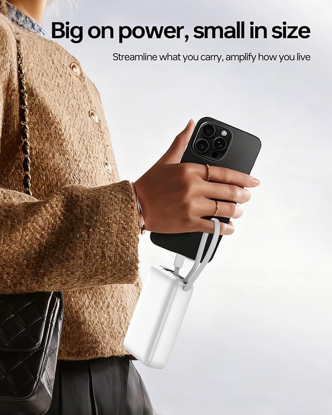 Portable Charger 50000mAh Power Bank,Portable Phone Charger with 2 Built in Cables,22.5W Fast Charging Travel Essentials Battery Pack for iPhone/iPad/MacBook/Android/Samsung Galaxy, White
